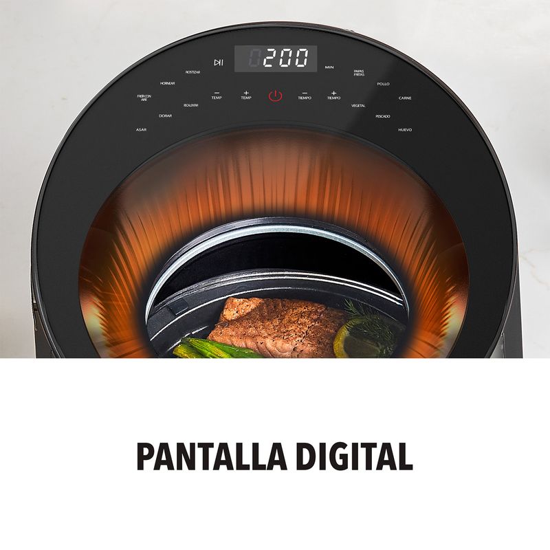 Cocina platillos completo 2 veces más rápido sin necesidad de precalentar tu freidora. Utilizando tecnología Luminex, combina potente luz infrarroja y aire super caliente 360°, cual aceleran los tiempos de cocción y te dejan disfrutar de un acabado caliente y crujiente. Su ventana superior te permite observar la cocción, conservando el calor dentro de la freidora. Incluye 12 ajustes personalizados y una alta temperatura máxima de 200°C en tal solo 2.4 segundos. Prepárate para unos resultado más crujientes, más saludable y